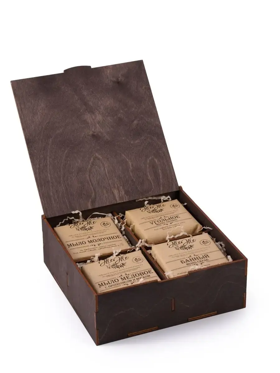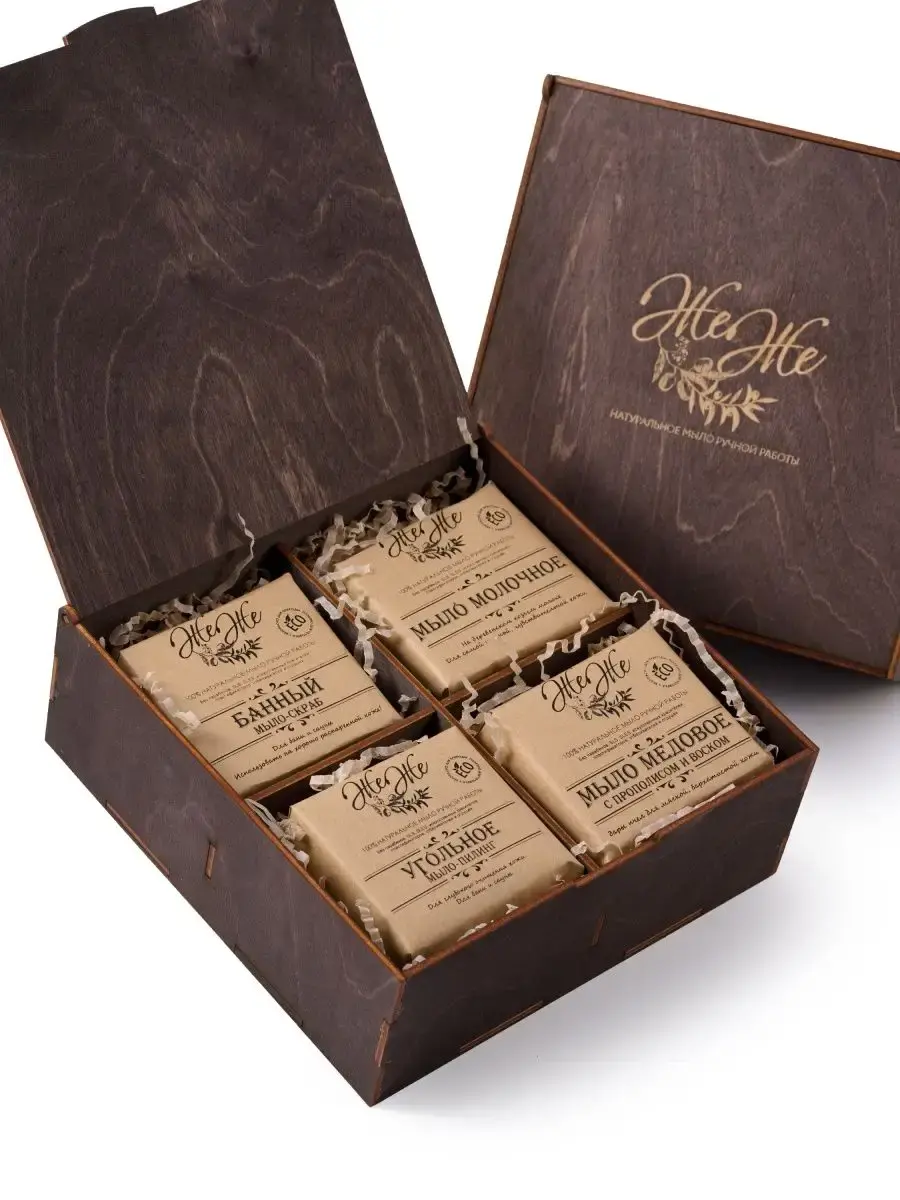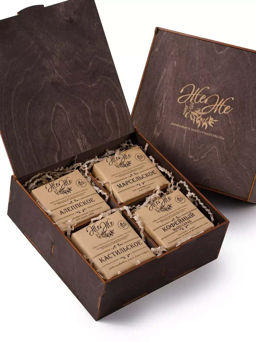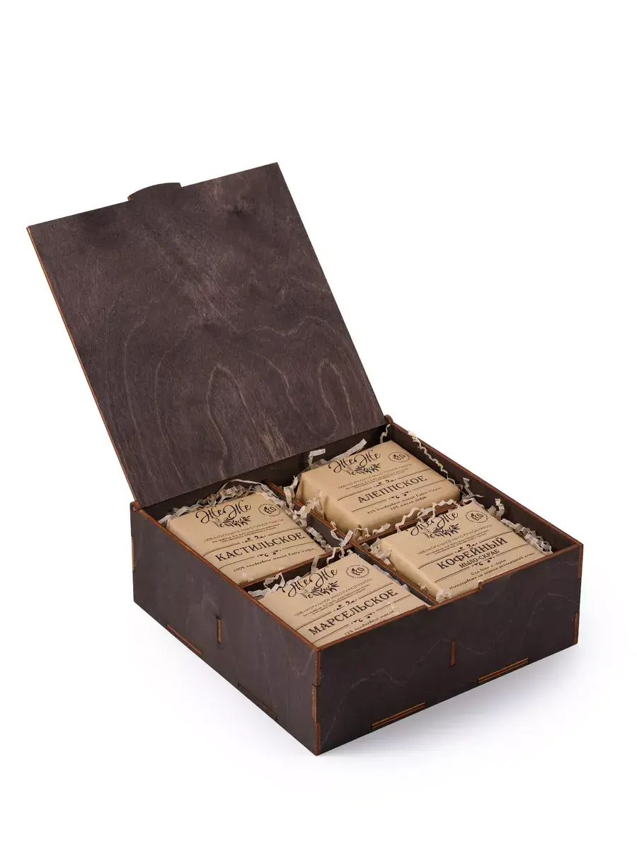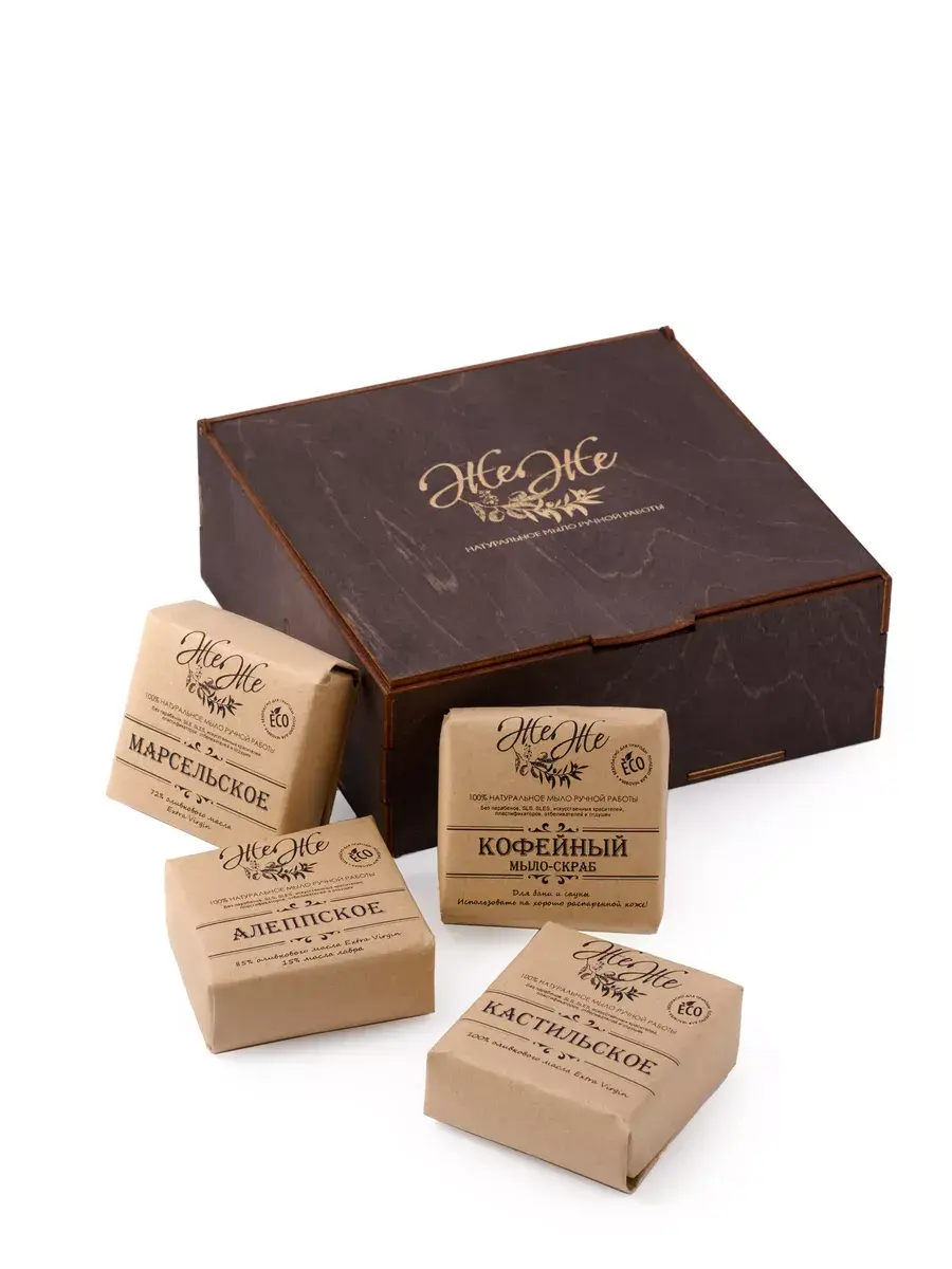 Премиальный набор классического мыла — Алеппского, Кастильского и Марсельского — погружает в историю роскоши и красоты. Дополнен изысканным кофейным скрабом с согревающим эффектом и утончённым ароматом. Элегантный деревянный бокс подчёркивает эксклюзивность подарка, подходящего для близких женщин всех возрастов.